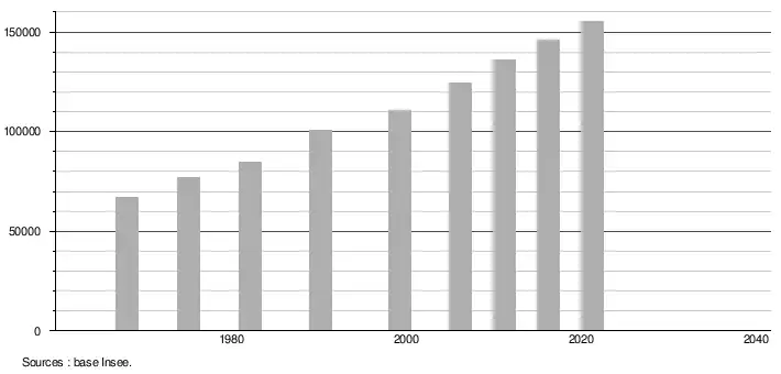 - Population municipale légale en vigueur au 1er janvier 2024, millésimée 2021, définie dans les limites territoriales en vigueur au 1er janvier 2023, date de référence statistique : 1er janvier 2021.