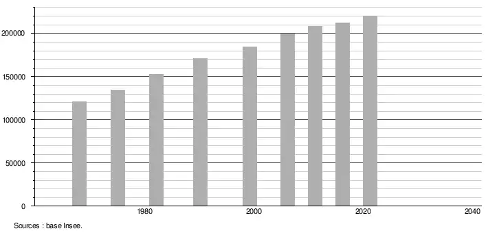 - Population municipale légale en vigueur au 1er janvier 2024, millésimée 2021, définie dans les limites territoriales en vigueur au 1er janvier 2023, date de référence statistique : 1er janvier 2021.