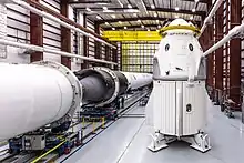 La capsule Crew Dragon 2 dans l'installation d'intégration horizontale LC-39A de SpaceX.