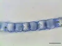 L’épiderme, frêle et mince, des tiges comprend généralement quatre épaisseurs, les deux couches extérieures présentant souvent de petits orifices. Le scléroderme est rougeâtre, brunâtre ou violet foncé. Les feuilles de la base, aplaties, lancéolées et anguleuses sont intimement liées au tronc de teinte carmin et ne présentent aucun tendinocyte.