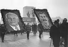 Le stalinisme est caractérisé par la mise en place d'un État policier totalitaire centralisé, l'emploi de la force et de la terreur comme mode de gouvernement, accompagnés d'un culte de la personnalité organisé autour du principal dirigeant de chaque Parti communiste. Les régimes staliniens se caractérisent par une économie planifiée[2] par l'État. Par extension, le terme de stalinisme et les adjectifs stalinien ou, plus rarement, staliniste sont parfois utilisés pour qualifier l'ensemble des régimes basés sur le modèle soviétique, ainsi que les partis politiques les soutenant.