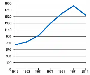 - (sq) « Évolution de la population 1948-2011 », sur pop-stat.mashke.org (consulté le ).