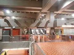 et l'œuvre Murales (1978), acier inoxydable, de Yves Roy, installation dans la mezzanine[13].