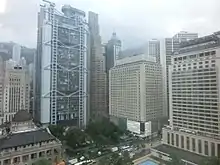 Le siège de HSBC est situé le long du côté sud de la place, de l'autre côté de Des Voeux Road (en). Le site était auparavant occupé par l'ancien hôtel de ville (construit en 1869 et démoli en 1933) et les générations antérieures plus petites du siège social de HSBC à Hong Kong.