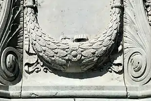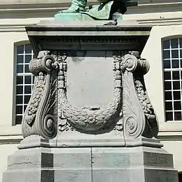 La statue repose sur un imposant piédestal en pierre bleue porté par un socle octogonal chanfreiné. Le piédestal, d'une esthétique plus éclectique que néoclassique, est orné sur chaque face d'une guirlande de laurier et, aux angles, de volutes agrémentées de feuilles d'acanthe et de guirlandes de fruits.