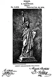 Le , Bartholdi obtient un brevet pour sa statue, le brevet D11,023[66],[67].