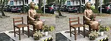 En , le Japon déclare qu'il ne paierait pas un milliard de yens à titre de compensation, à moins que la statue ne soit retirée de son emplacement devant l'ambassade de Japon à Séoul[16]. Un accord est trouvé en 2015. Au début de l'année 2017, une deuxième statue est érigée à Busan. Le Japon rappelle alors deux diplomates de Corée du Sud et arrête des négociations de haut niveau[17].