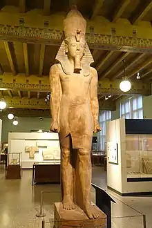Dégagée en 1933, la statue, disposée au sud, est incomplète et a le visage abimé, elle est enregistrée sous le no JE 59869. Elle n'a pas subi de restaurations et ne mesure plus que trois mètres[5]. La statue du Caire fait partie des objets de l'exposition Toutânkhamon itinérante « du centenaire » de 2018 à 2022, qui débute à Los Angeles puis séjourne à Paris en 2019 et ensuite à Londres, Washington, Séoul, Sydney, Philadelphie, Chicago, Tokyo et Osaka.