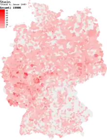 Répartition du patronyme Stein en Allemagne (2005)