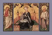 Son autre tableau le plus réputé, parfois surnommé la Mona Lisa de Cologne[20], est La Madone au buisson de roses, peint vers 1445, et actuellement exposé au Wallraf-Richartz Museum où il est entré en 1848. Ce panneau provient probablement d'un diptyque démembré dont l'autre panneau aurait représenté le donateur, à l'exemple du Diptyque avec la Vierge et un donateur (vers 1490, Alte Pinakothek) de Hans Memling[n. 7].