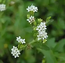 Ses tiges faibles semi-ligneuses portent des feuilles opposées, les petites fleurs blanches apparaissent sur des têtes indéfinies. Elle est autostérile et son pollen peut être allergène, les graines sont petites et sont dispersées par le vent grâce à leur pappus duveteux.