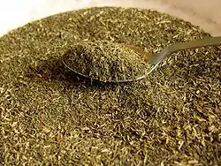 L'utilisation alimentaire de la plante sous forme de feuille n'est pas autorisée dans l'Union européenne en application de la règlementation relative aux nouveaux aliments[10] (cf. paragraphe « Histoire » supra).