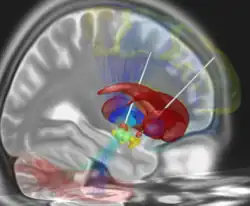 Quelques essais ont été faits lors de dépressions graves et résistantes[10] avec des résultats favorables[11], initiés par la neurologue américaine Helen S. Mayberg[12]. Dans ce cas, la stimulation a pour cible l'aire de Brodmann 25[13], située dans le cortex cingulaire antérieur.