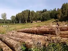 Le stockage des grumes à l'air libre est un mode de stockage des grumes. Il se fait généralement en piles croisées ouvertes et assure un séchage lent des grumes.