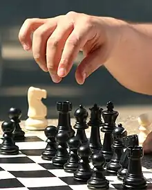 Le roi est une pièce défensive en milieu de partie, mais il devient une pièce offensive en finale, dès que l'échiquier ne contient plus de pièce et que le but est la promotion des pions, ou même dans certains cas, quand il ne reste qu'une ou deux pièces mineures[1]. Dans cette phase de jeu, les manœuvres du roi ont une importance essentielle[1]. Avec le matériel réduit, un mat rapide n'est plus vraisemblable, et le déplacement du roi vers le centre de l'échiquier lui donne plus de possibilités de porter des menaces et d'influencer le jeu. Par exemple, dans certains cas un roi peut arrêter un pion passé adverse sur le point de se promouvoir.