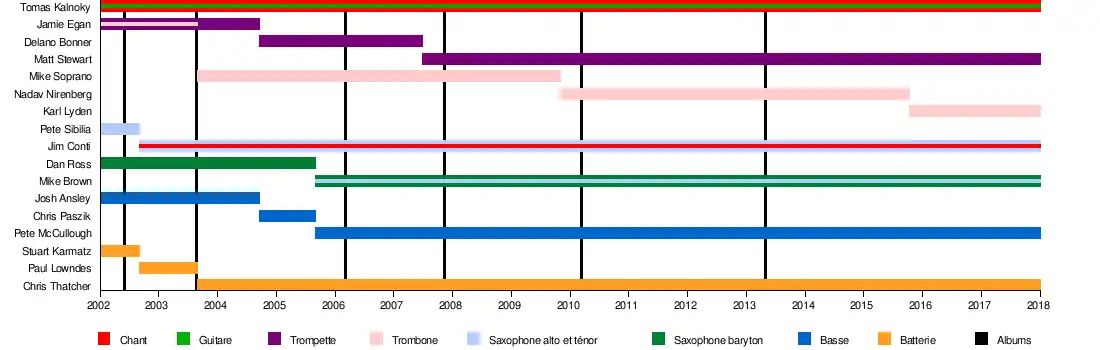 - Mike Brown – saxophone baryton, saxophone alto, chœurs (depuis 2005)