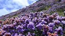 Strobilanthes kunthiana, en tamoul et en malayalam Kurinji ou Neelakurinji[1], est une espèce d'arbuste d'Inde que l'on trouve dans les forêts de shola (en) des Ghats occidentaux au Kerala. Les Nilgiris, littéralement les montagnes bleues, tirent leur nom des fleurs bleu violacé de Neelakurinji qui ne fleurissent qu'une fois tous les 12 ans. De toutes les plantes fleurissant à long intervalle, Strobilanthes kunthiana est la plus rigoureusement prouvée, avec des floraisons documentées en 1838, 1850, 1862, 1874, 1886, 1898, 1910, 1922, 1934, 1946, 1958, 1970[2], 1982, 1994, 2006 et 2018. Ces floraisons ne correspondent pas aux cycles solaires.