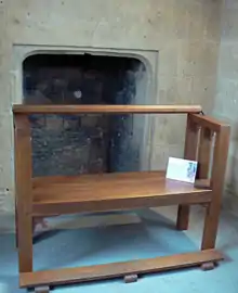 - Le banc et le coffre restent, avec les tabourets, le mobilier majeur dans la plupart des logis de cette époque. Il est sous forme de simple banc, banc à tournis, d'archebanc, de banc-coffre ou de coffre-bahut souvent recouvert de cuir noir[2].