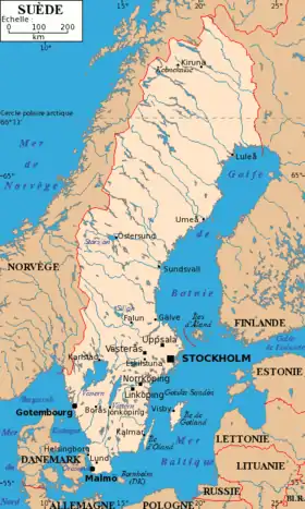 La Suède (en suédois : Sverige /ˈsvæ̌rjɛ/[6]) — en forme longue le royaume de Suède (Konungariket Sverige /ˈkôːnɵŋaˌriːkɛt ˈsvæ̌rjɛ/[6] ) — est un pays d'Europe du Nord et de Scandinavie. Sa capitale est Stockholm, ses citoyens sont les Suédois et Suédoises et sa langue officielle et majoritaire est le suédois. Le finnois et le sami sont aussi parlés, principalement dans le nord du pays. Les variations régionales sont fréquentes.