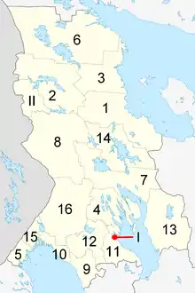 | Lahdenpohja (Лахденпохья) | • Elisenvaara (Элисенваара) • Hiitola (Хийтола) • Kurkijoki (Куркиеки) • Miinala | [[Fichier:Outline_Map_of_Lakhdenpokhsky_District_(Karelia).svg|300px|{{#if:|{{{alt}}}|Subdivisions de la république de Carélie est dans la page Raïon de Lahdenpohja.]]