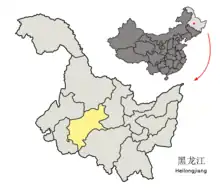 Localisation de la préfecture de Suihua (en jaune)