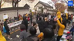 D'autres élèves, plus jeunes ou nouvellement étudiants, ainsi que les familles de ceux passant l'examen se réunissent à l'extérieur des bâtiments pour encourager les candidats[20],[23], en distribuant des friandises[15].