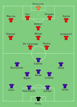 | Onyewu (1-0) Onyewu (2-0) Nicaise (3-1) |
