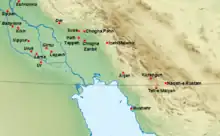Pour la seconde moitié du IIIe millénaire av. J.-C. (Suse IVB), les sources écrites plus développées permettent de mieux connaître la situation politique de Suse, essentiellement vis-à-vis des royaumes mésopotamiens, d'où provient l'essentiel de la documentation textuelle. La ville n'apparaît néanmoins quasiment pas dans les premières mentions de conflits entre cités mésopotamiennes et royaumes du sud-ouest iranien (elle fait cependant partie des villes qu'E-anatum de Lagash proclame avoir vaincues), qui impliquent d'autres entités politiques, notamment Awan, située quelque part au nord de Suse[58]. Peut-être dominée par les rois élamites d’Awan au début du XXVe siècle av. J.-C., Suse est conquise après 2340 par le roi Sargon d'Akkad, qui l’incorpore dans son Empire. S'y installe alors une administration mésopotamienne, introduisant les pratiques gestionnaires de cette région, comme en témoignent les tablettes de la période, montrant l’activité du gouverneur de la cité, ainsi que celles de marchands agissant pour le compte de l’État. Les personnes mentionnées dans les textes portent principalement des noms akkadiens[59]. La culture matérielle de la ville est en tout cas similaire à celle de la Basse Mésopotamie contemporaine. Elle a alors repris une phase de croissance, son étendue étant d'approximativement 46 hectares vers la fin de la domination akkadienne et les décennies suivantes[60].