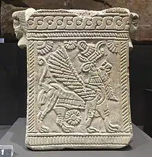 Bas-relief perforé représentant une scène de banquet et une scène de combat contre un animal[57].