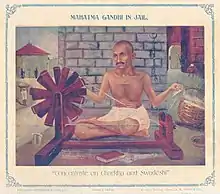 "Concentrate on Charkha and Swadeshi" Art de bazar, années 1930.