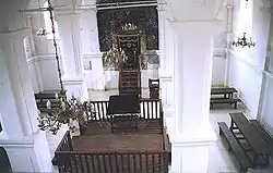 La salle principale de prières, de forme rectangulaire, fait environ 14 mètres par 12,5 mètres. Elle est couverte d'un plafond formant voûte, reposant sur quatre piliers entre lesquels se situe la Bimah en bois. Sur le mur Est, le cadre richement orné entourant l'Arche sainte, date des années 1777-1778, et est un des mieux conservé de toute la région de la Petite-Pologne. Dans la partie centrale, entre deux colonnes autour desquelles s'enroulent des brindilles de vignes, se situe un renfoncement qui sert de niche aux rouleaux de la Torah.