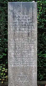 En 1986, une stèle est élevée rue du Consul Uebele, à la mémoire des victimes juives du nazisme, et rappelant la destruction de la synagogue. Le texte en allemand indique :
