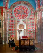 La rosace de la grande fenêtre sur la façade est d'influence gothique[7]. Au-dessus de la croisée du transept se trouve le tambour du dôme avec de hautes fenêtres, surmonté du dôme hémisphérique, lui-même couronné par un lanternon avec un petit dôme en bulbe.