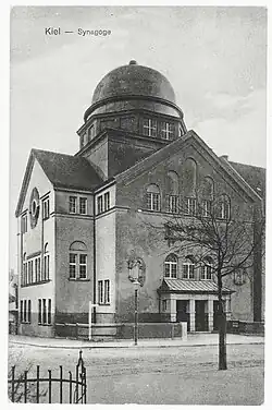 Les premiers Juifs s'installent à Kiel à la fin du XVIIe siècle. En 1796, la première maison de prière juive de la ville est aménagée au 12 de la Kehdenstraße, dans un ancien café universitaire. Jusqu'en 1868, le bâtiment est loué par la communauté juive et utilisé comme synagogue. Le bâtiment a été démoli en 1890.