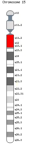 - dans 25 à 30 % des cas, disomie maternelle de la paire de chromosome 15 (deux copies d'origine maternelle). Ce mécanisme tend à devenir plus fréquent, car il est en rapport avec l'âge maternel[6].