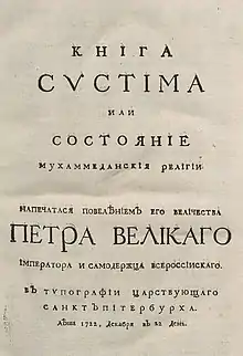 Dmitrie Cantemir, Книга Систима, или Состояние мухаммеданския религии, 1722. Page du titre.