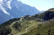 ![]() Vue de la télécabine de la Flégère depuis les Praz de Chamonix. |