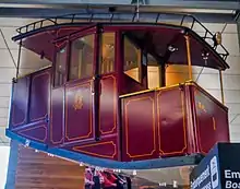 ![]() Vue en 2011 de la gare de départ rénovée aux Pélerins : l'ouverture empruntée par les cabines est désormais fermée par la verrière. |