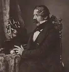 Le premier télégraphe mis en service avec un retour par la terre est dû à Carl August von Steinheil en 1838[28]. La découverte de Steinheil est indépendante des travaux antérieurs et il est souvent, à tort, cité comme l'inventeur du principe[alpha 2]. Steinheil travaillait à la mise en place d'un télégraphe le long de la ligne de chemin de fer Nuremberg-Fürth, sur une distance de 8 km. Steinheil a d'abord tenté, à la suggestion de Carl Friedrich Gauss, d'utiliser les deux rails de la voie ferrée comme conducteurs du télégraphe. Ce projet a échoué parce que les rails n'étaient pas bien isolés de la terre et qu'il y avait donc un chemin conducteur entre eux. Cependant, cet échec initial a fait comprendre à Steinheil que la terre pouvait être utilisée comme conducteur et il a alors réussi avec un seul fil et un retour par la terre[29],[30],[27].