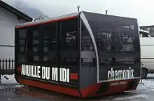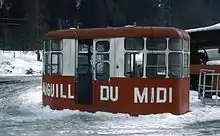![]() Cabine à la gare intermédiaire du Plan de l'Aiguille dominée par l'aiguille du Midi.  |