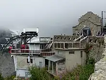 Du fait de l'implantation des différents sites desservis par la remontée mécanique, celle-ci est préférentiellement empruntée en aller-retour depuis l'amont vers l'aval. La gare amont est édifiée en bordure de la terrasse la plus haute du Montenvers, à proximité immédiate de la gare terminus du chemin de fer à crémaillère, à 1 910 mètres d'altitude[3]. La gare aval est située au sud-est, à 1 774 mètres d'altitude soit 136 mètres plus bas[3],[1]. L'unique cabine de 45 places puis 70 places à partir de 1972 effectue des rotations en va-et-vient entre les deux gares[3]. La gare amont est particulière dans le sens où elle n'abrite que les quais, la machinerie étant déportée, située quelques mètres plus loin dans un bâtiment annexe au pied de la terrasse[3].