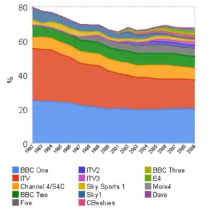 ![]() | Terrestre (gratuit) | 47,6 % | 12 300 000 | télévision analogique terrestre, Freeview |