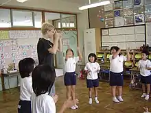 Enfants chantant la chanson dans une école élémentaire japonaise.