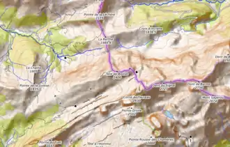 Elle culmine à 2 406 mètres d'altitude selon l'IGN[2] et à 2 405 mètres selon Swisstopo[1]. Elle sépare la vallée du Giffre et le val d'Illiez.