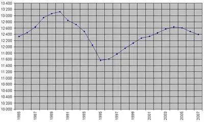 | 1990 | 13 124 | 2009 | 12 384 | |||
