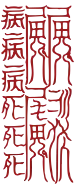 La maladie était au cœur de cette nouvelle religion. Pour guérir, le malade était invité à confesser ses péchés ou à reconnaître ceux de ses ancêtres. Le prête calligraphiait une pétition (shangzhang 上章) comportant la requête du patient et la cause présumée de son mal, l’expression de son repentir pour sa faute et la demande pour le secours de l’officier divin approprié [7]. Il cherchait ensuite quel fonctionnaire céleste (du supramonde) était le plus à même de guérir la maladie. Il visualisait différents messagers spirituels sortant de son corps pour délivrer la pétition à ces puissances supérieures.