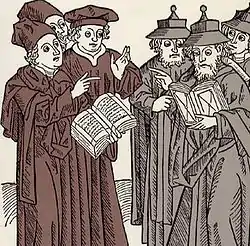 À l'origine[7], l'étude de la Torah se transmettait oralement. Des Sages et des érudits, dont les plus éminents étaient appelés Talmidei Hakhamim avant d'être nommés Rabbanim (voir Semikha), élaboraient et débattaient de questions de loi juive, discutant de la Torah et des autres livres de la Bible hébraïque (dont ils auraient fixé le canon vers -450) sans bénéficier d'autres sources écrites que les livres bibliques eux-mêmes, la consignation par écrit de la loi orale faisant l'objet d'un interdit[8]. La plus ancienne méthode d'étude et d'enseignement rabbiniques semble avoir été fondée sur les midrashim, dans lesquels des discussions halakhiques étaient structurées sous forme de commentaire exégétique de la Torah écrite ou Pentateuque.