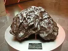 Météorite baptisée Tamentit, ayant été découverte dans le Sahara en 1864. Actuellement exposée au Parc Vulcania. Prêt du Museum national d'Histoire naturelle de Paris[4].