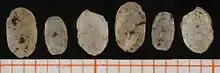 Longue de 70 à 100 mm, et de couleur blanchâtre à blanc-crème ou parfois rougeâtre à gris jaunâtre ornée de nombreux points noirs .