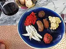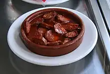 • chorizo, saucisse sèche piquante au paprika, coupée en tranches et servie froide